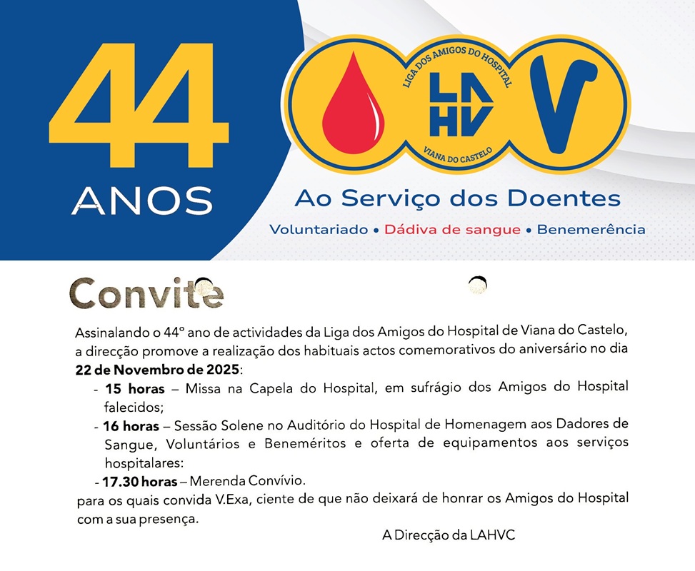 Fundada há 44 anos, a Liga dos Amigos do Hospital de Viana do Castelo tem-se destacado pelo apoio constante a doentes, familiares e profissionais de saúde, promovendo ações solidárias, humanização dos cuidados e incentivo à doação de sangue.