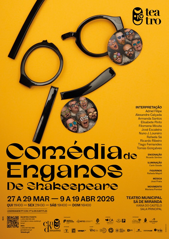 O Teatro do Noroeste – Centro Dramático de Viana estreia no próximo 27 de março, Dia Mundial do Teatro, o espetáculo “Comédia de Enganos”, de William Shakespeare, dirigido a públicos a partir dos 12 anos. A peça coloca a comédia e o jogo teatral no centro da experiência em palco.