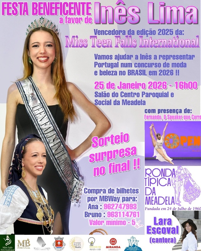 Para apoiar a sua viagem e preparação, será realizada este domingo, 25 de janeiro, a partir das 16h00, uma festa de angariação de fundos no Salão do Centro Paroquial e Social da Meadela. A iniciativa pretende mobilizar a comunidade e proporcionar os recursos necessários à candidata.